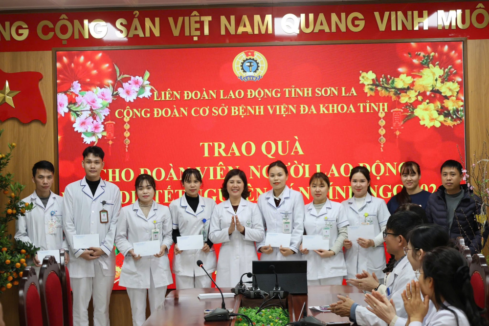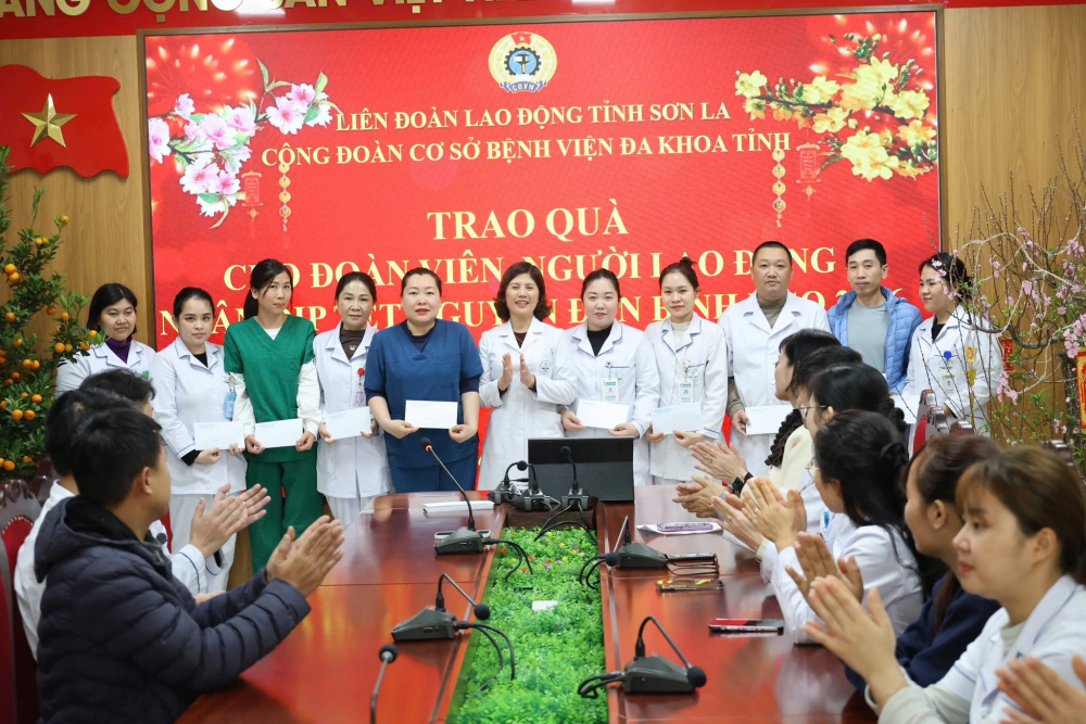 Tại chương trình, đồng chí Lò Văn Nhay - Phó Giám đốc bệnh viện cùng đ/c Mai Lan Hương - Chủ tịch CĐCS, Phó Giám đốc bệnh viện đã gửi những lời chúc xuân ấm áp, bình an đồng thời chuyển trao 10 suất quà của Tổng Liên đoàn Lao động Việt Nam (mỗi suất quà trị giá 2.500.000đ) và 50 suất quà của Liên đoàn Lao động tỉnh Sơn La (mỗi suất quà trị giá 1.000.000đ tiền mặt) chia sẻ với những khó khăn, động viên đoàn viên công đoàn, người lao động nỗ lực vượt qua khó khăn, đón Tết Nguyên đán trong không khí ấm áp, nghĩa tình.
